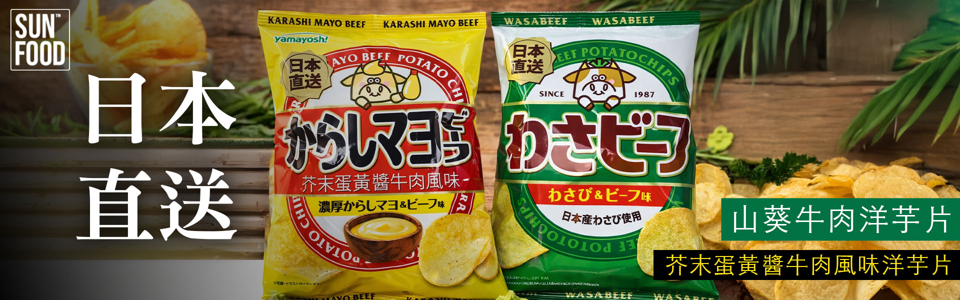 SUNFOOD山葵烤牛肉風味洋芋片/芥末蛋黃醬牛肉風味洋芋片yamayoshi WASA BEEF(12包/箱) +