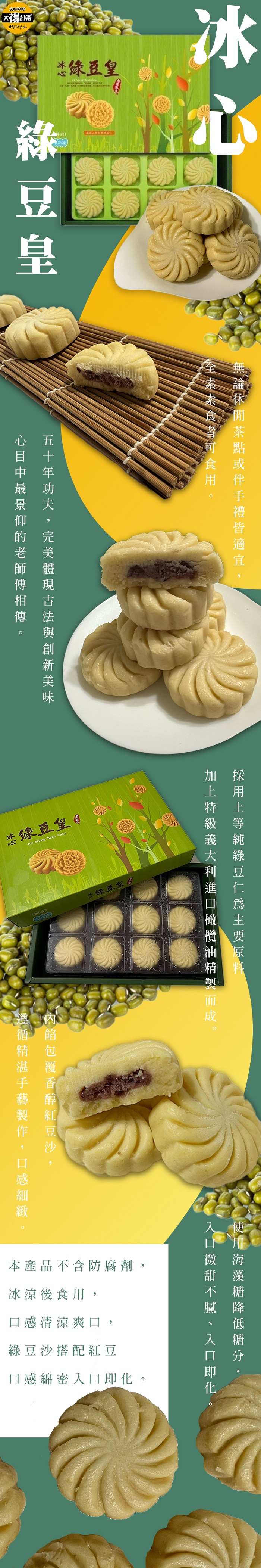 商品名稱:冰心綠豆糕/綠豆黃28G/12入(全素)