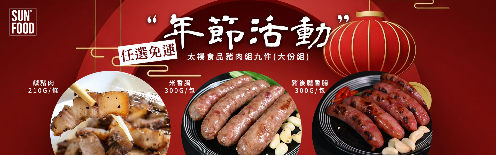 年菜-太禓食品豬肉組九件(大份組) 豬後腿香腸300g/包 米香腸300g/包 鹹豬肉210g/條 任選免運 +