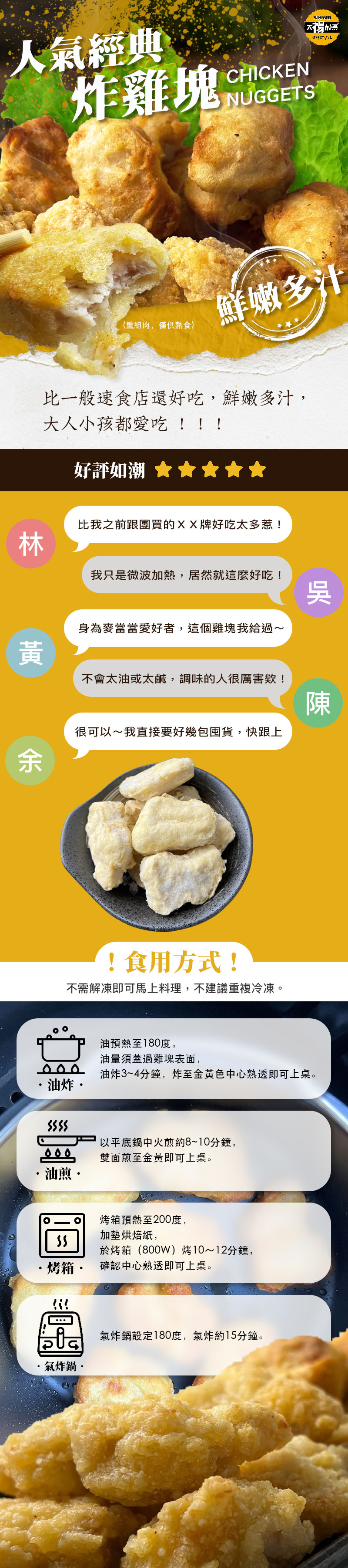 成分:產品名稱:超人氣超優真雞塊(1公斤大包裝)